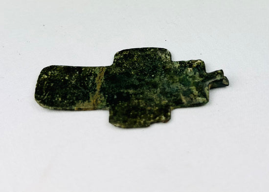Material: Aleación de cobre fundido con restos de esmalte champlevé (verde/negro)