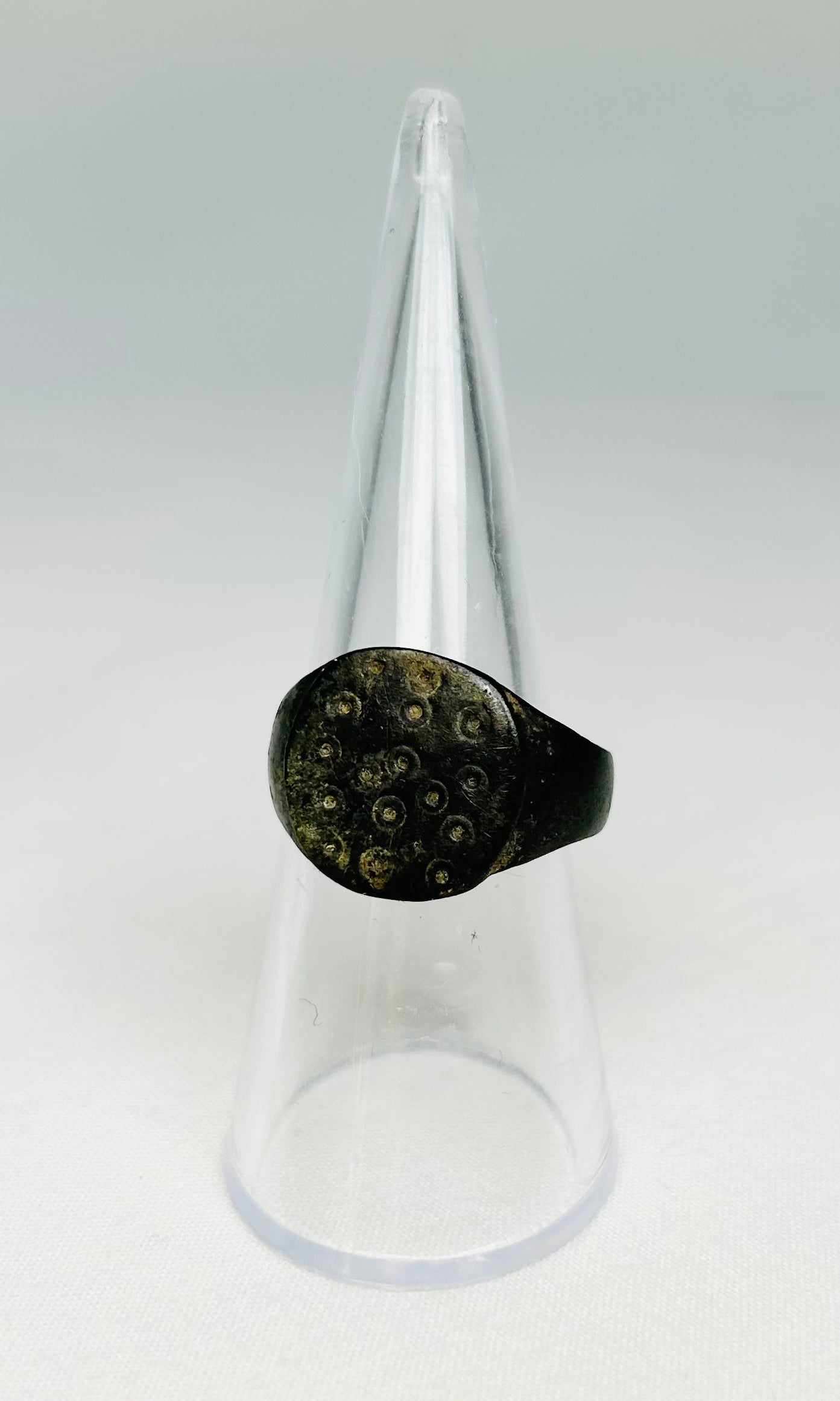 Ancient Roman Bronze Ring | Flat Bezel with Ring-and-Dot Solar Motifs | 1st–3rd Century CE