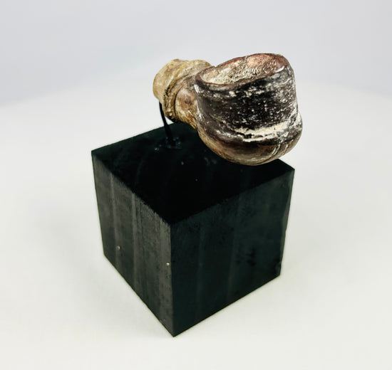 This small pottery fragment, hand-formed and fired in earthenware, consists of a rounded bowl-like chamber with a narrow projecting stem. Likely part of a larger vessel or apparatus, it may have functioned as a spout attachment, an element of a water pipe (nargile), or a component of an incense burner. Its compact form, surface mineral accretions, and encrustations attest to both its utilitarian origin and its archaeological survival.