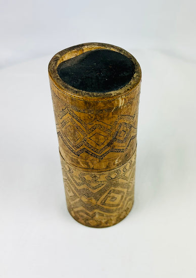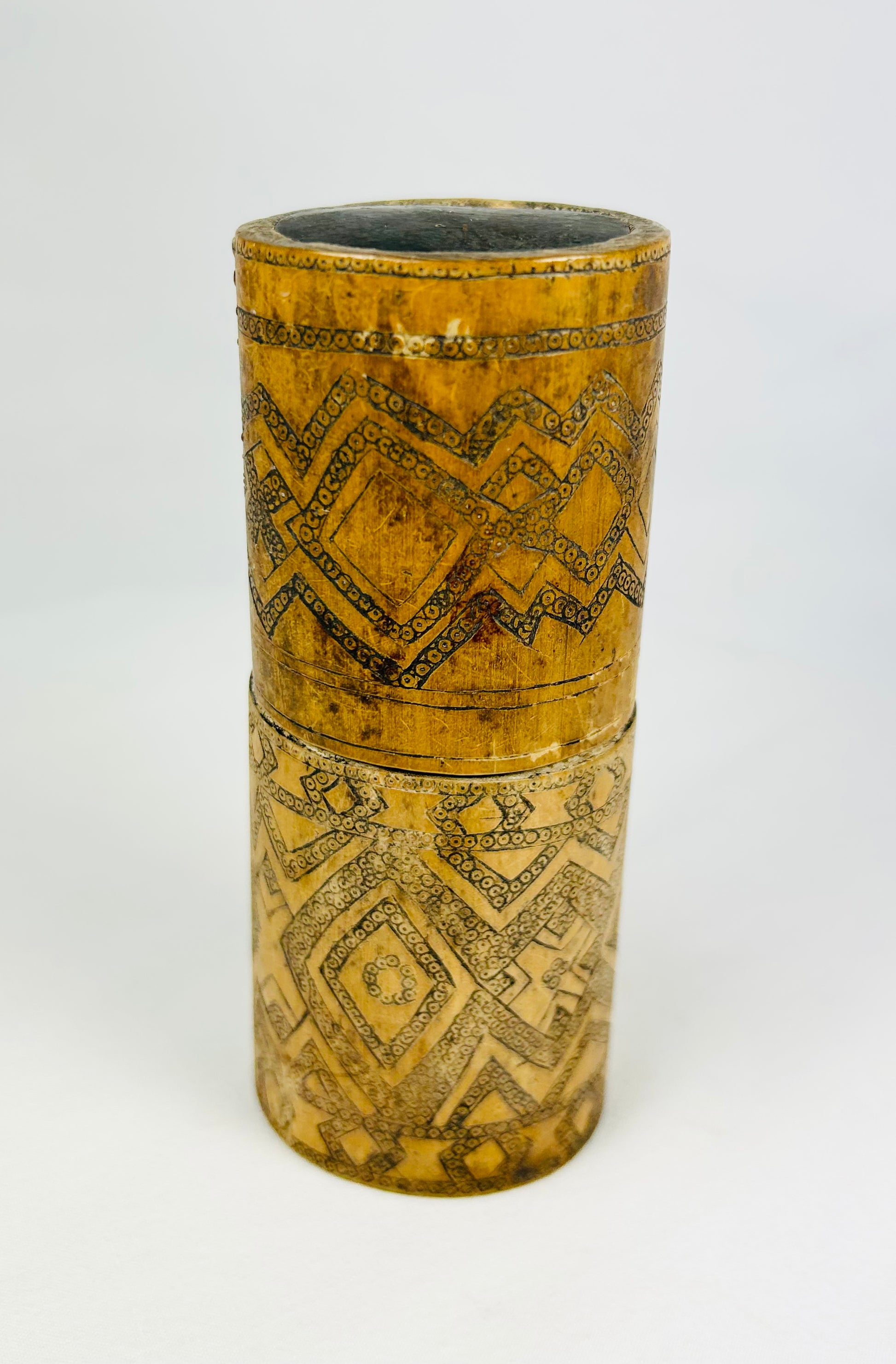 Carved Bamboo Container with Fitted Lid | Incised Geometric Design | Circa 19th Century