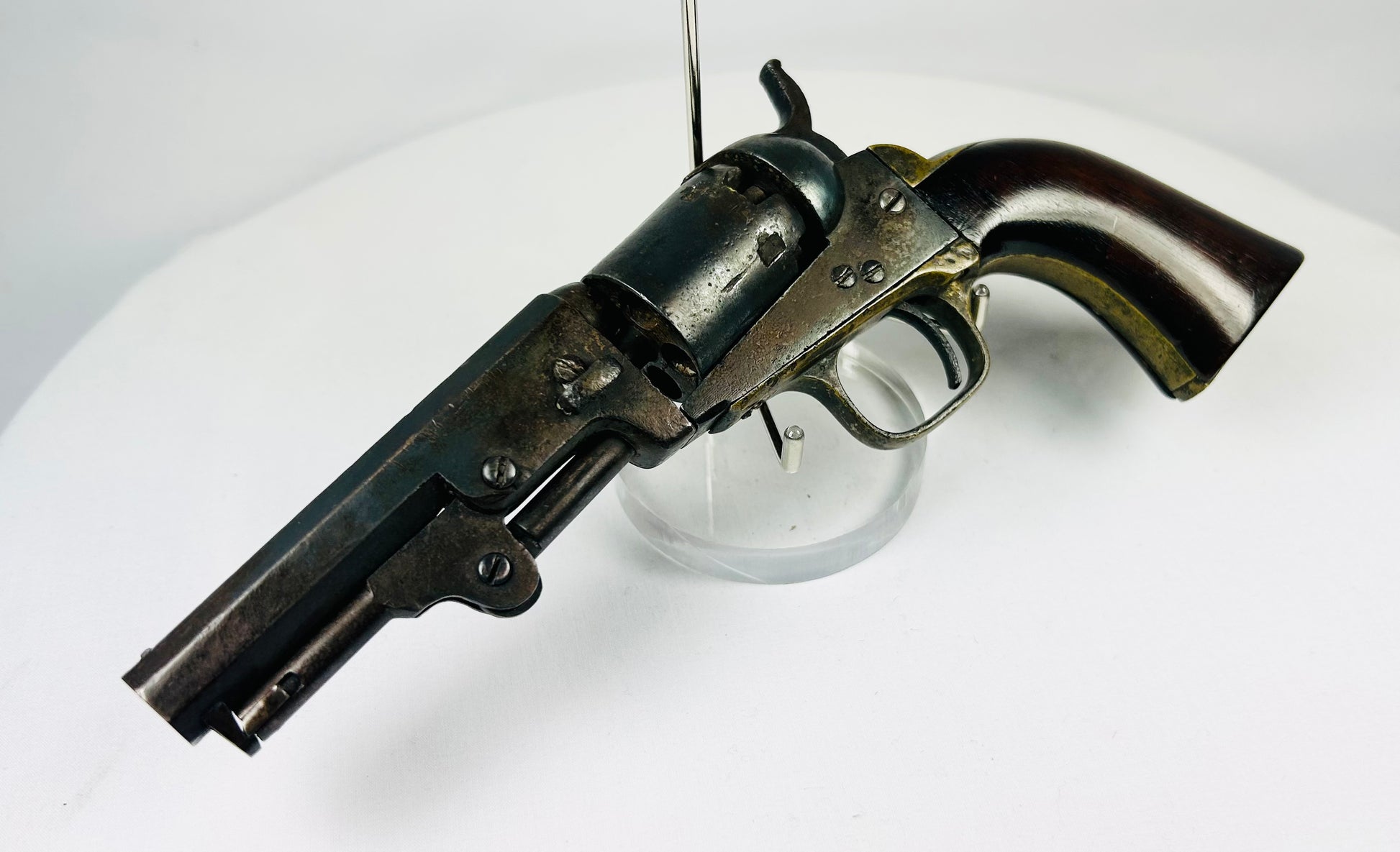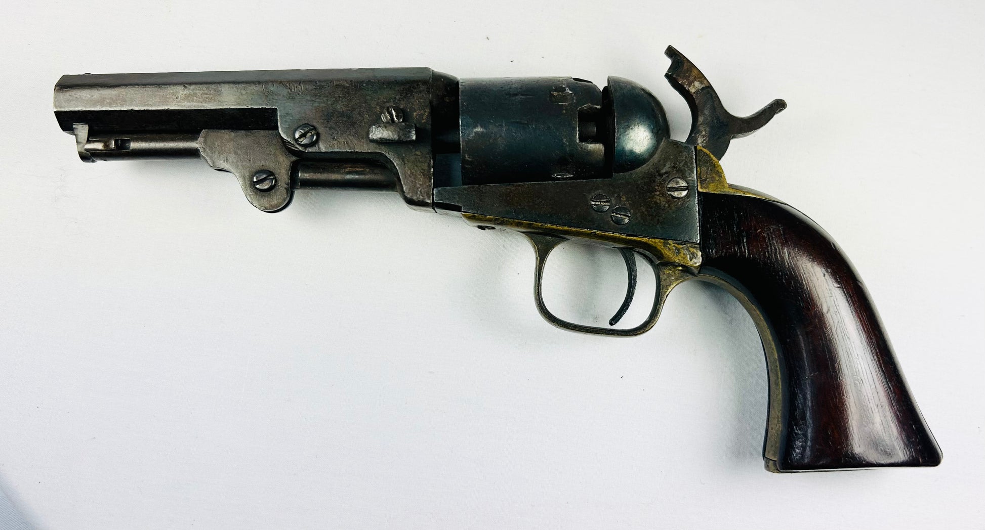 A historically significant Colt Model 1849 Pocket Revolver, manufactured in 1859, one of the most popular percussion revolvers of the 19th century. Compact in form yet highly reliable, this revolver became the favored sidearm for civilians, lawmen, and soldiers during the volatile years leading up to and through the American Civil War.