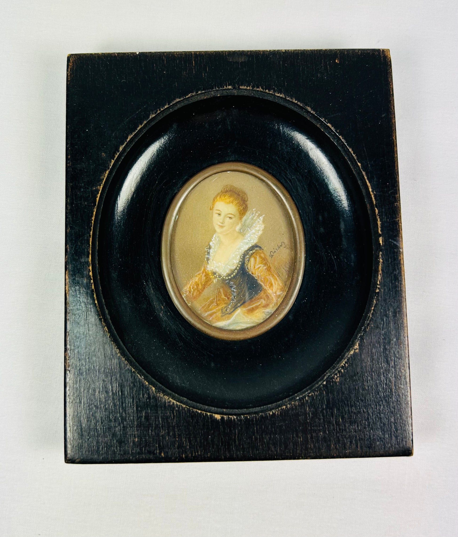 Continental Miniature: Young Woman with Lace Ruff | Ebonized Frame | Circa 1860–1890