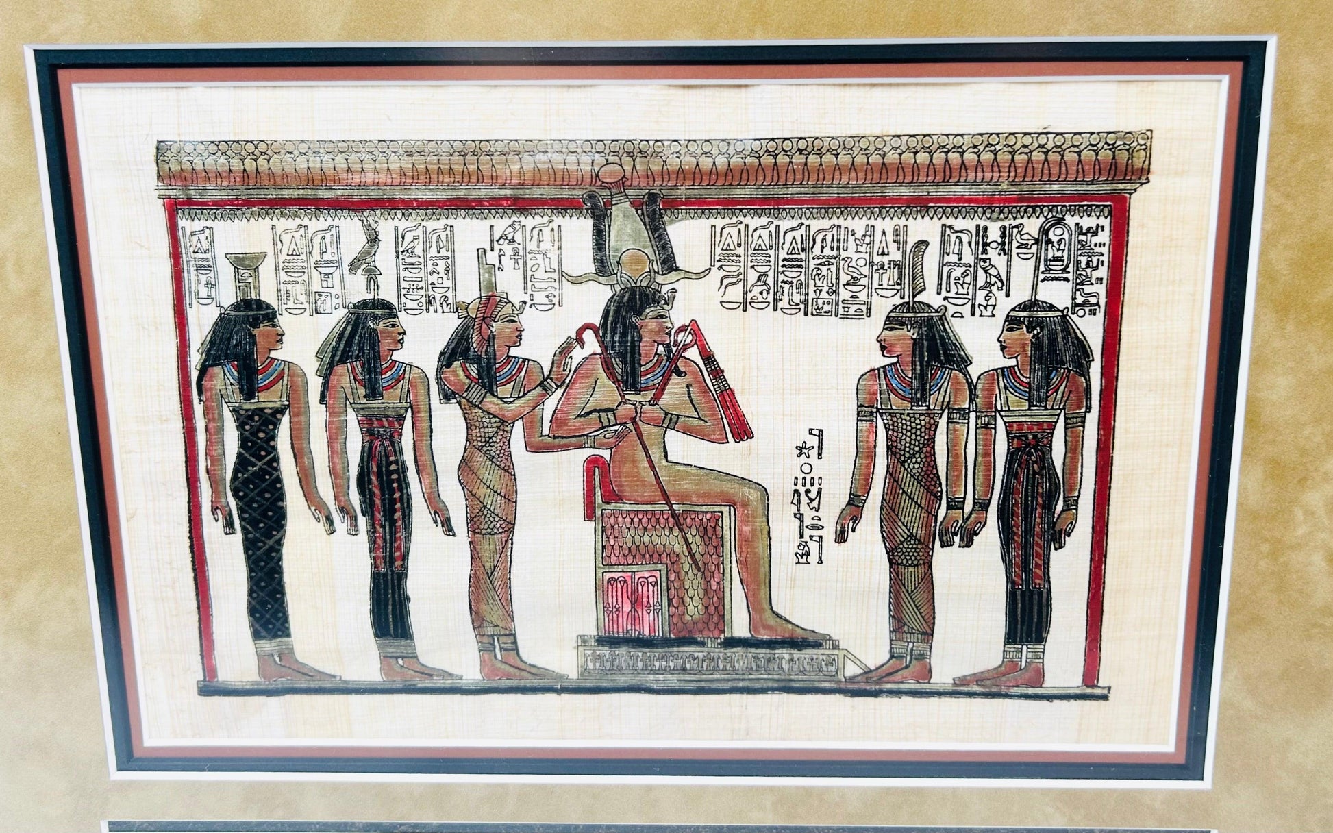 Excellent; professionally framed with clean glass and well-preserved papyrus. Minimal handling wear; pigments remain vibrant. Matting and frame show normal age-appropriate signs of display.