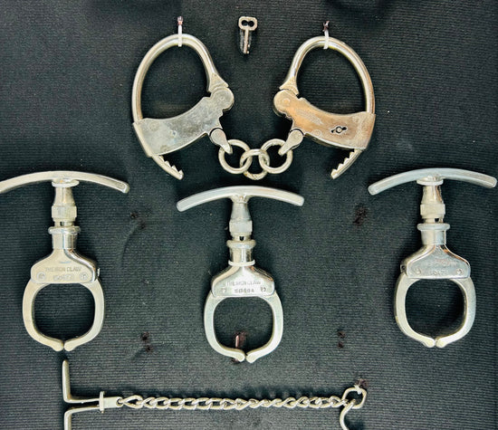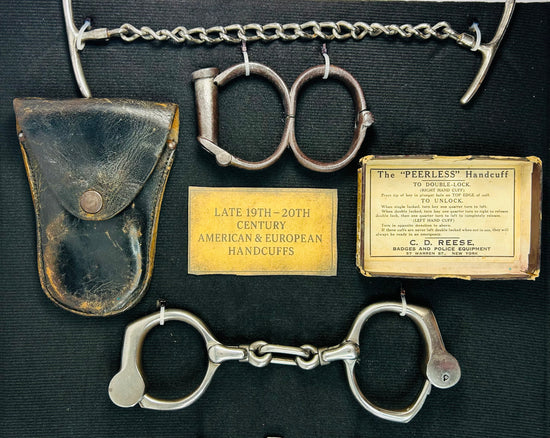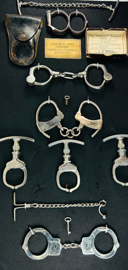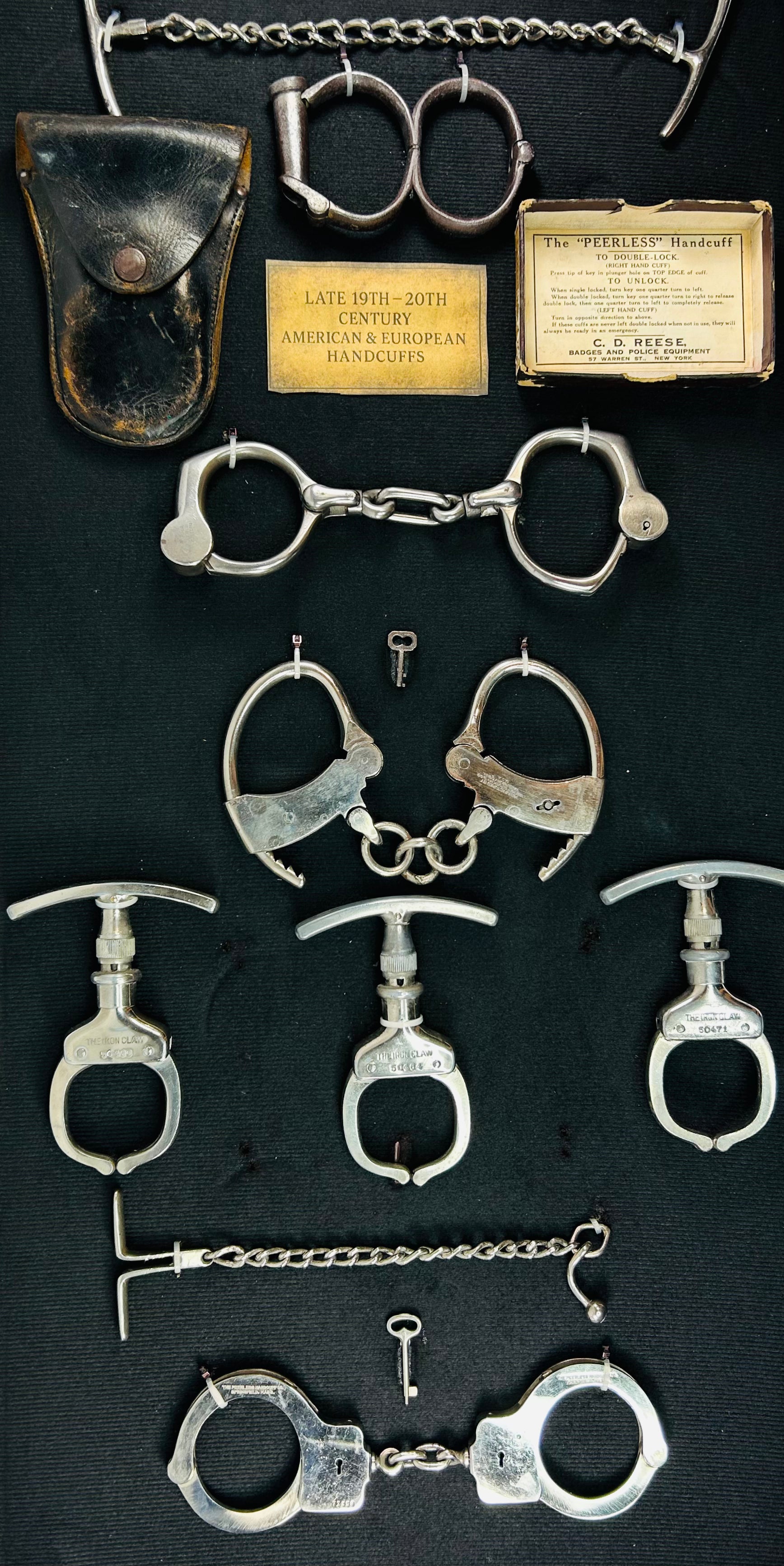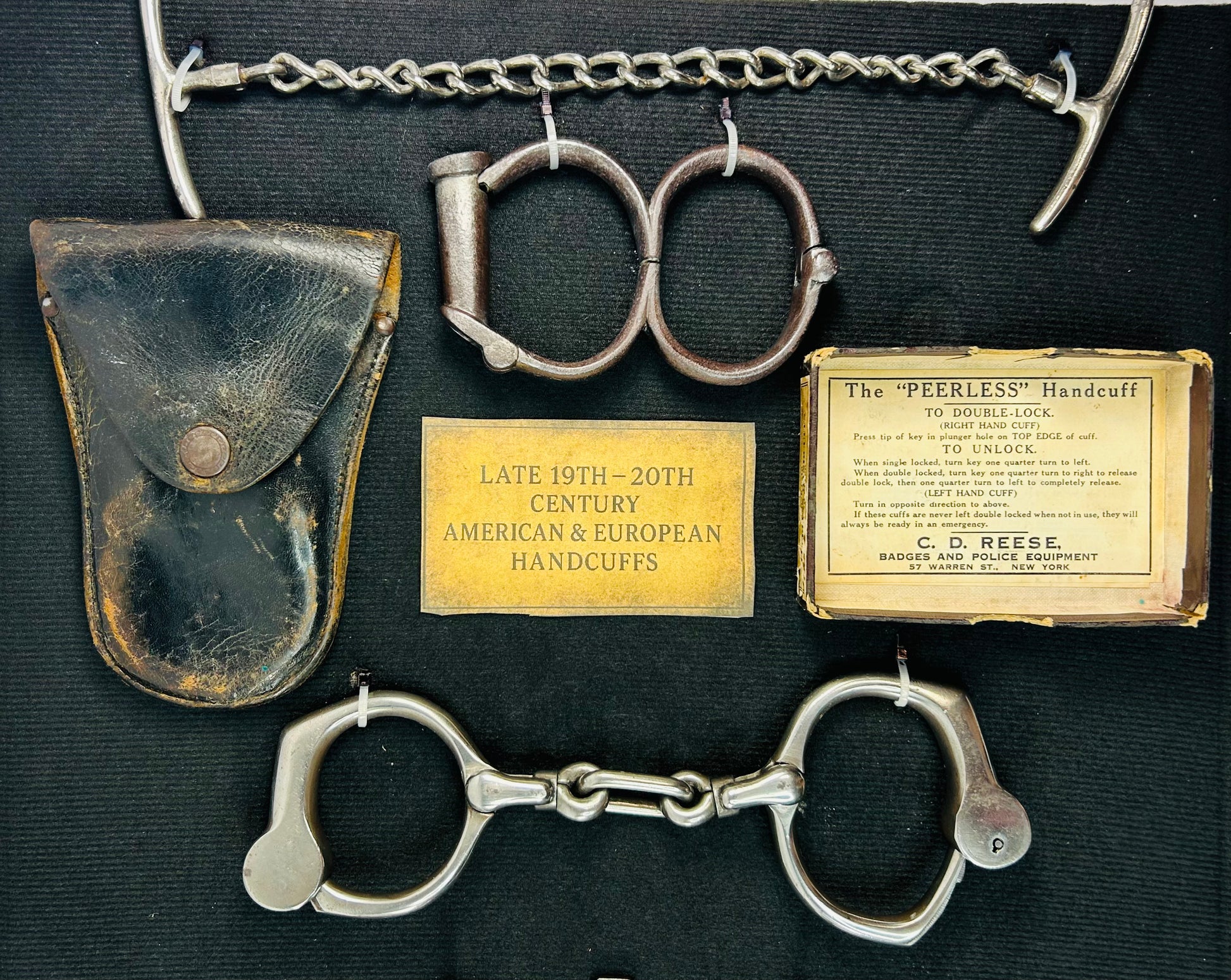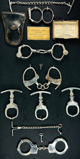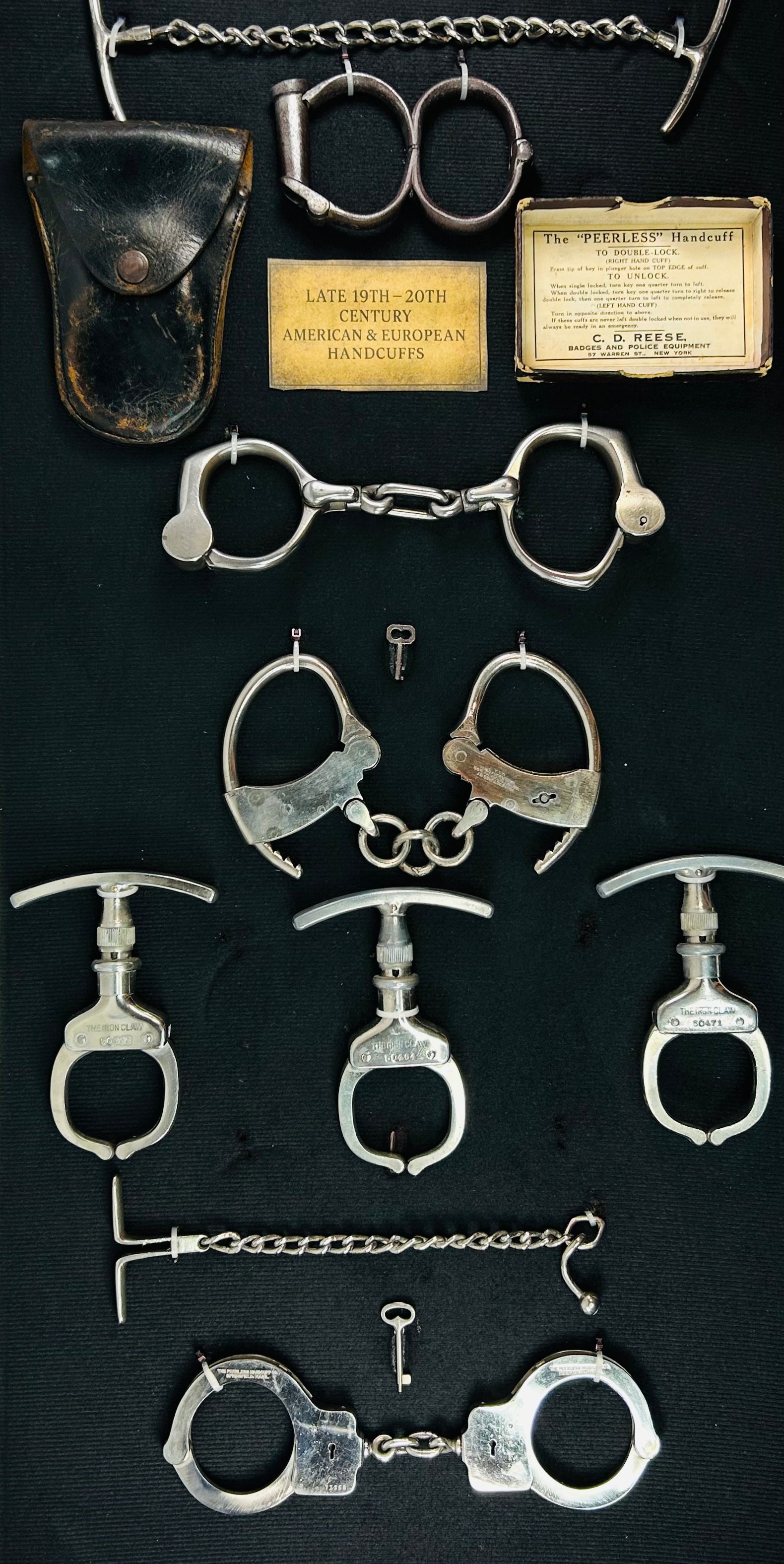 This collection provides a tangible representation of the evolution of restraint technology, from late 19th-century iron claws to refined mid-20th-century locking handcuffs. It illustrates advances in security design, mechanical ingenuity, and the historical practices of law enforcement in both the United States and Europe. The display is significant both as a scholarly resource and as a museum-quality presentation of restraint device history.