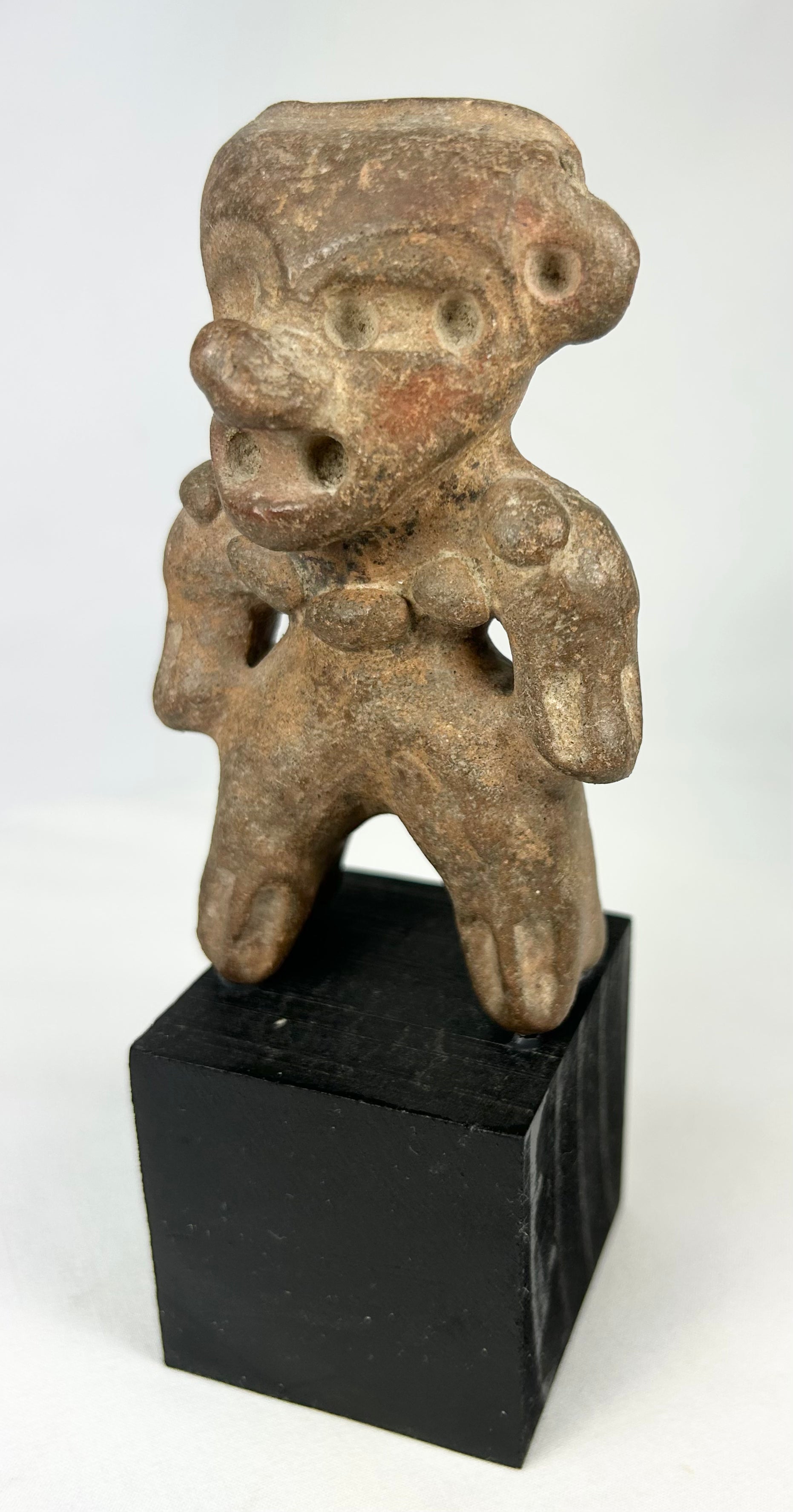 Pre-Columbian Ritual Figure | Hand-Modeled Clay Sculpture | Mounted Display | Circa 300 BCE–500 CE