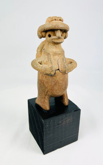 Material: Hand-modeled terracotta with earthen deposits; traces of slip; mounted on a modern wood display block
